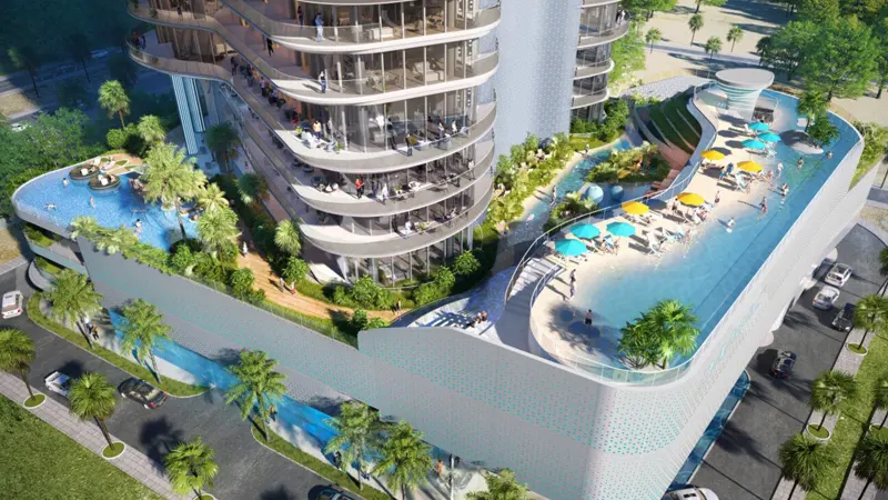 Resort-Style Living: Multiple pools, lush gardens, modern fitness centres, and fine dining spaces create a tranquil yet vibrant resort atmosphere.