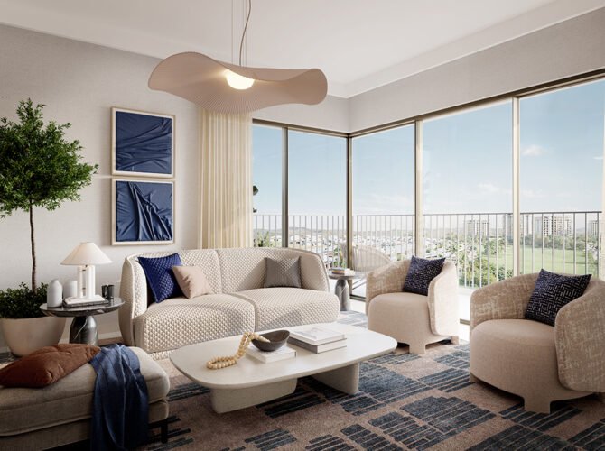 ● 3- and 4-bedroom townhouses and villas with private balconies and gardens ● Overlooking a world-class 18-hole golf course ● Located in Dubai South’s greenest and most connected district ● Close to Expo City Dubai and Al Maktoum International Airport ● Designed with floor-to-ceiling windows and open-plan living spaces ● Easy access to parks, schools, retail, and dining options ● Gated community with 24/7 security and green spaces ● Developed by Emaar, known for premium communities in Dubai
