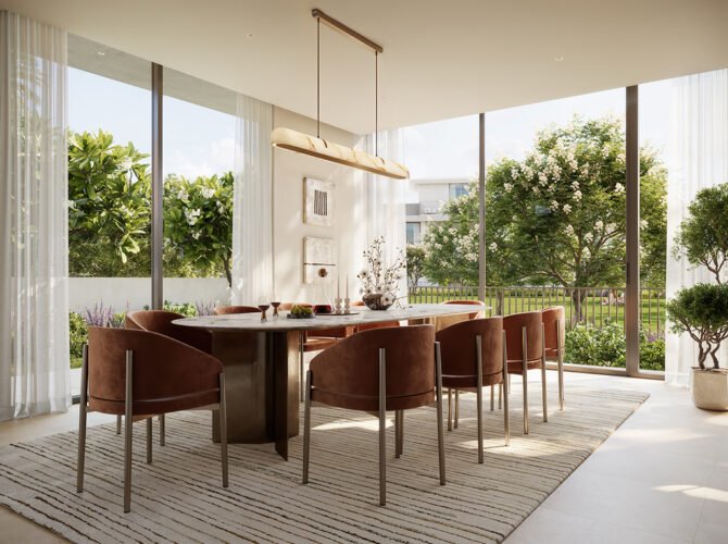 Situated within Emaar’s exclusive Grand Polo Club & Resort, Selvara is part of a carefully curated community focused on equestrian elegance and luxury estate living. The master plan includes three full-sized polo fields, Arabian-style stables, lush gardens, wellness pavilions, and a grand clubhouse. Residences are positioned along peaceful lanes with easy access to nature trails, fitness facilities, and social gathering spots.